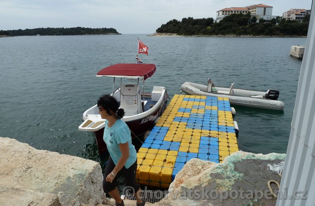 Není to nic složitého. Nad přístavem z parkoviště uvidíte restauraci Bunarina. Za restaurací odjíždí na ostrov loď Odisej. Loď převeze na ostrov nejen Vás, ale i Vaši potápěčskou výstroj a kempinkovou výbavu. V roce 2025 bude jezdit loď od 24.6. denně každou hodinu od 9:00 do 21:00. Cena za osobu 1 cesta 2,5 €, karnet 20 jízd za 35 EUR ( 1,75 EUR /1 cesta). Cena za přepravu kempinkové a potápěčské výbavy 5 €. Lístky lze zakoupit na lodi.